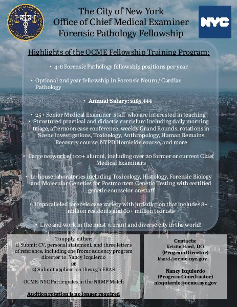 The City of New York Office of the Chief Medical Examiner Fellowship Program |