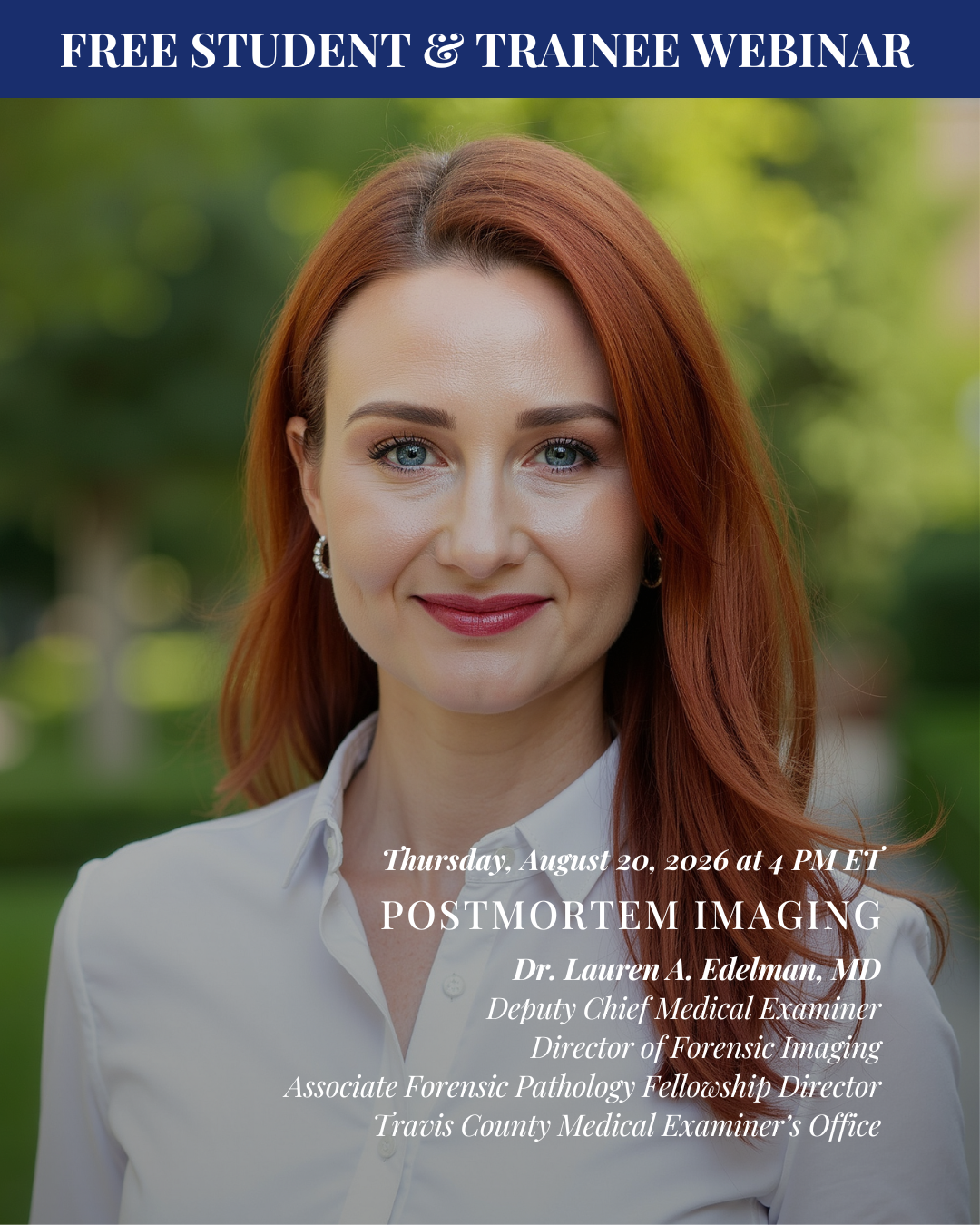 "Manner of Death Determination in Challenging Cases" Link to register for event: https://us06web.zoom.us/webinar/register/WN_b9i1ileURg-l9scRmV47QQ
